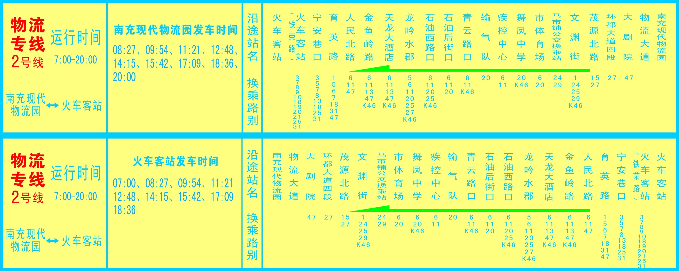 物流專線2號線:南充現(xiàn)代物流園----火車客站