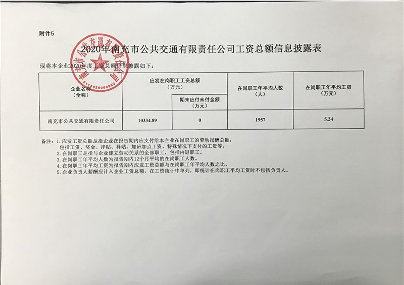 南充市公共交通有限責(zé)任公司2020年度薪酬信息表