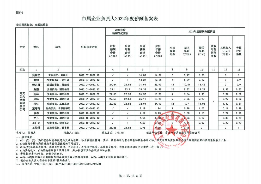 市屬企業(yè)負責人2022年度薪酬備案表
