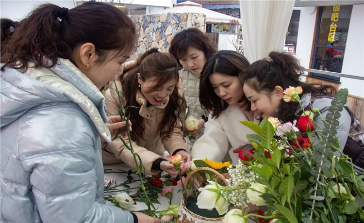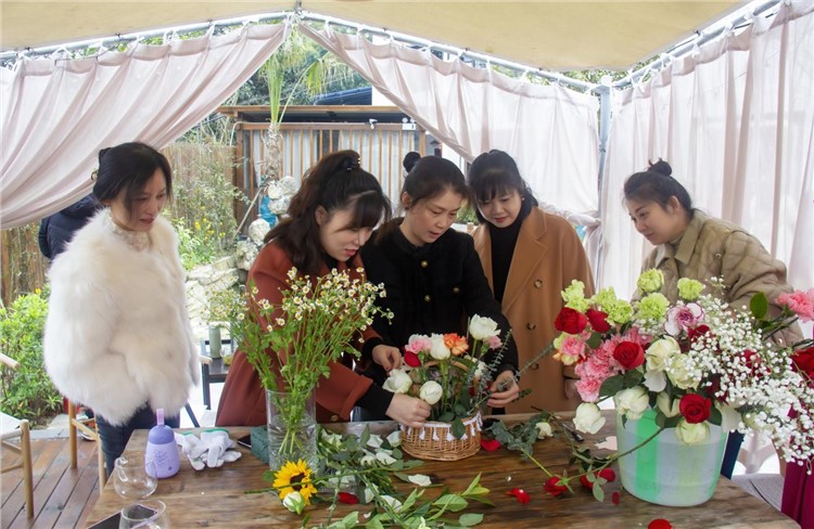 插花是國人生活藝術的一種表現形式,指將花草樹木的枝、葉、花朵,在花器中重新布置,以此煥發(fā)新興之美。人們借著插花的名義,以花枝展情韻,展現自身的高雅情懷以及抒發(fā)對生活的熱愛。潔白無瑕的白桔梗,清新淡雅的康乃馨,濃烈絢爛的紅玫瑰,金色活潑的向日葵……隨著一束束色彩斑斕的鮮花被依次擺放在桌面上,花藝·茶藝沙龍活動的序幕就此展開。